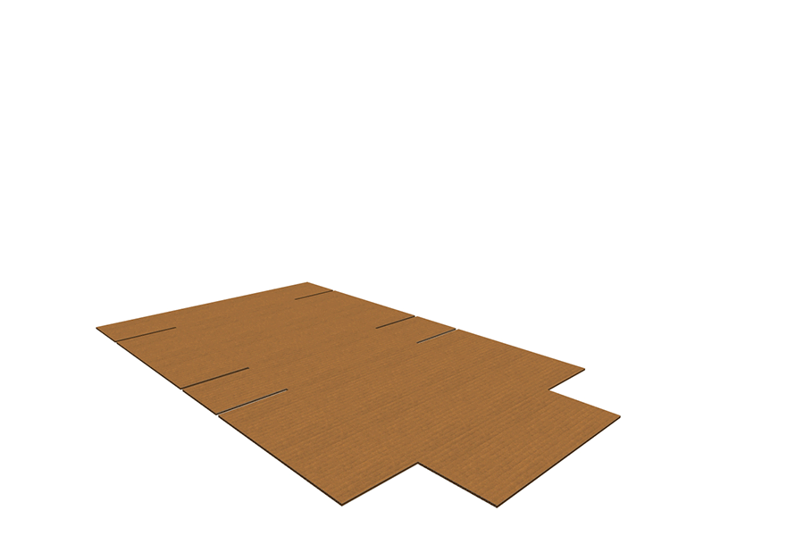 Zachodzące na siebie klapy zapewniają dodatkową amortyzację i ochronę podczas układania pudeł na spodzie. Dodatkowa grubość zapewnia większą wytrzymałość również podczas układania pudeł na bokach.